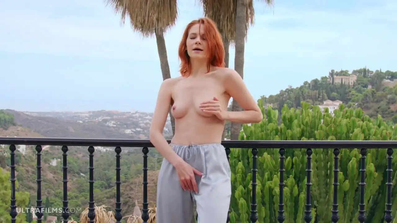 This beautiful redhead can't help but rub her wet pussy outside her house. She's a horny slut who loves to masturbate in private, but today she's feeling extra naughty. Watch as she pleases herself with her fingers until she cums.