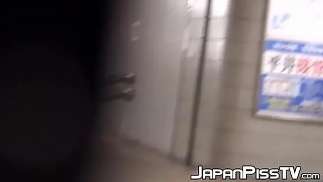 Japanese girls peeing in public toilet while voyeur watches