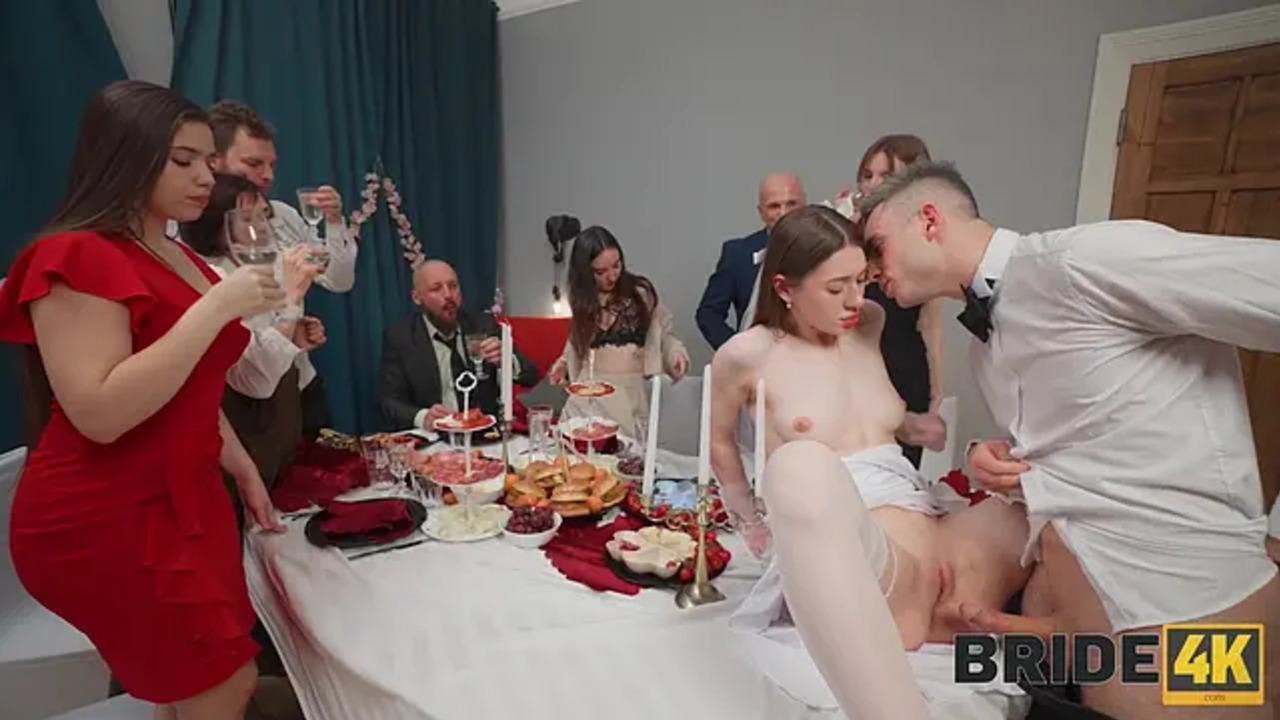 Newlywed Russian bride gets caught up in a kinky moment with her stepdad. She takes his big cock in her tight ass while wearing her white wedding dress and sexy stockings. Her stepdad cums in her pretty face after she screams his name.